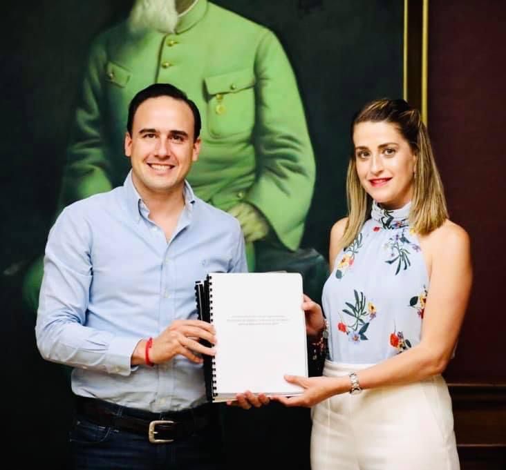El tesorero municipal Antonio Gutiérrez Rodríguez entregó al alcalde Manolo Jiménez el Anteproyecto de la Ley de Ingresos, Presupuesto de Ingresos y Presupuesto de Egresos para el ejercicio fiscal 2022, mismo que entregó a su vez a la síndica Lydia María González Rodríguez para su análisis.