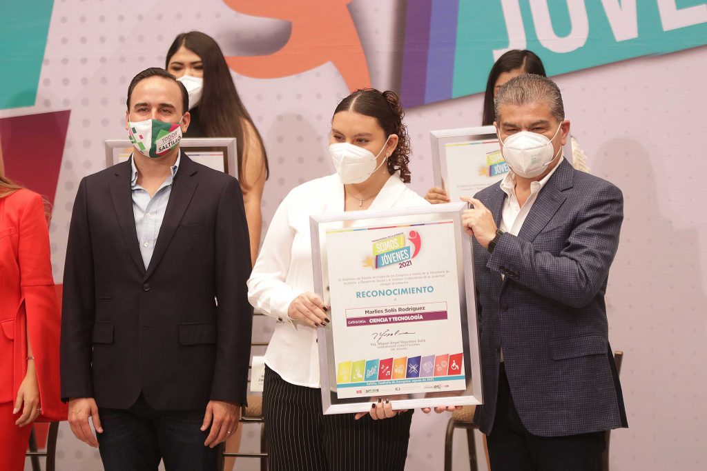 Los estudiantes pertenecientes a la máxima casa de estudios y ganadores del Premio Estatal de la Juventud “Somos Jóvenes 2021” son: en Excelencia Académica nivel Preparatoria, Gabriela Lizbeth Capuchino Bertaud, alumna de primer semestre de la Facultad de Odontología de la Unidad Torreón; en la categoría de Ciencia y Tecnología, Marlies Solís Rodríguez, estudiante de Ingeniería Bioquímica en la Facultad de Ciencias Biológicas UT.