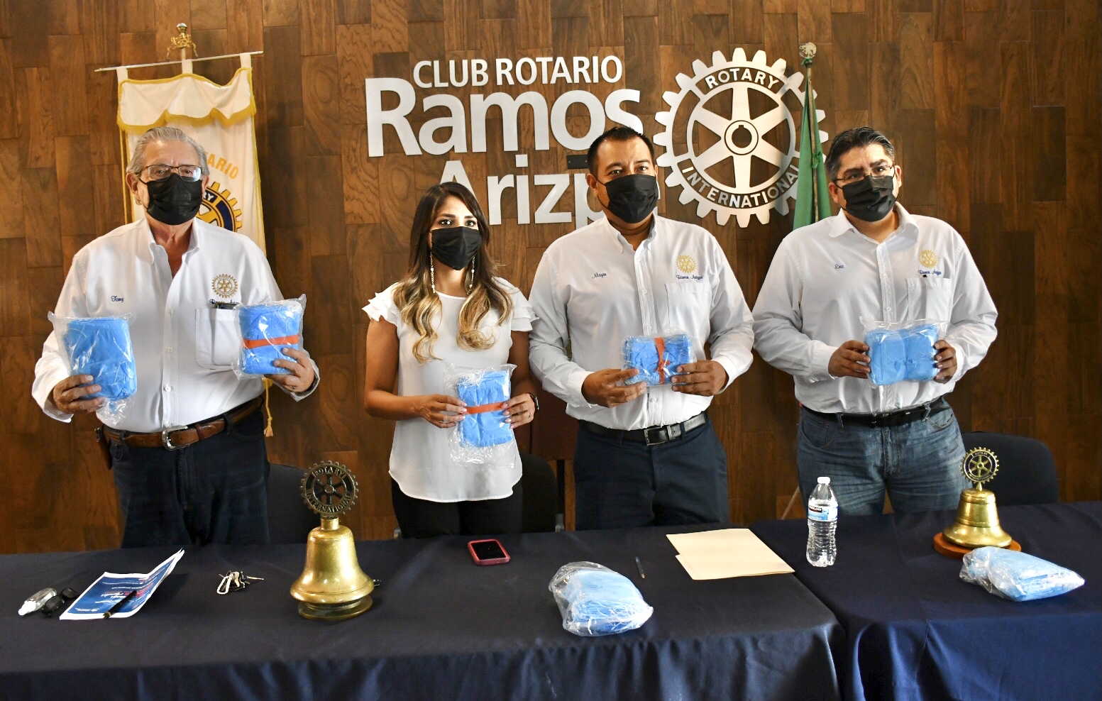 Una donación de 100 mil cubrebocas de tipo quirúrgico recibió el Club Rotario de Ramos Arizpe para que se entreguen en escuelas, como parte de su cruzada de concientización que realizan por las diferentes colonias y ejidos de este municipio, con el fin de reforzar el cuidado de las familias a causa de la pandemia que origina el COVID-19.