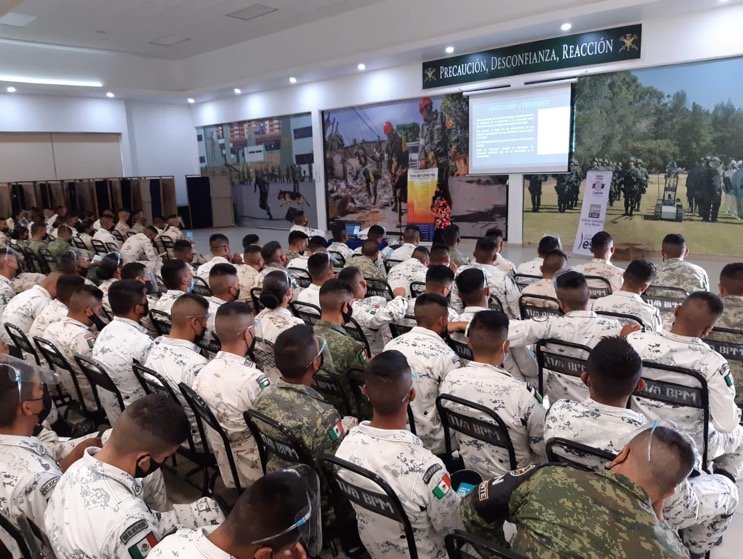 Las capacitaciones se llevaron a cabo en el Municipio de Torreón, Coahuila, en donde estuvieron presentes 300 elementos de la Guardia nacional y se brindaron herramientas en los temas de “Violencia de Género”, “Masculinidades Positivas y “Acoso y Hostigamiento Sexual Laboral”.