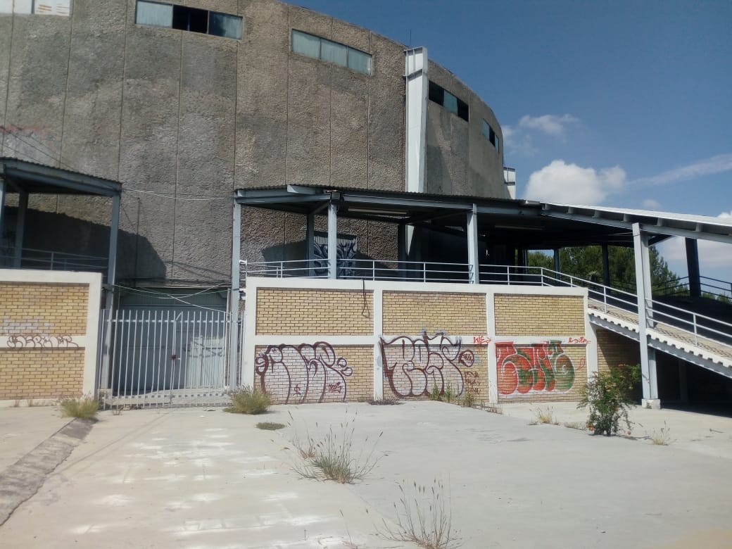 Actualmente este auditorio de dos pisos está invadido de maleza, grafiteado y vandalizado por los maleantes y sus techos de láminas y ventanas en algunas secciones simplemente ya se cayeron o se volaron.