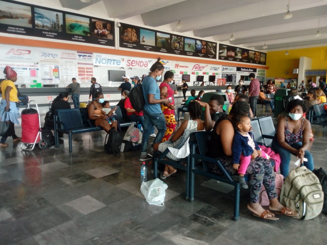 La terminal de autobuses de Saltillo se ha visto abarrotada en estos últimos días por cientos de ciudadanos de origen haitiano que buscan comprar boletos para trasladarse en autobús con sus familias hacia Acuña o Piedras Negras.