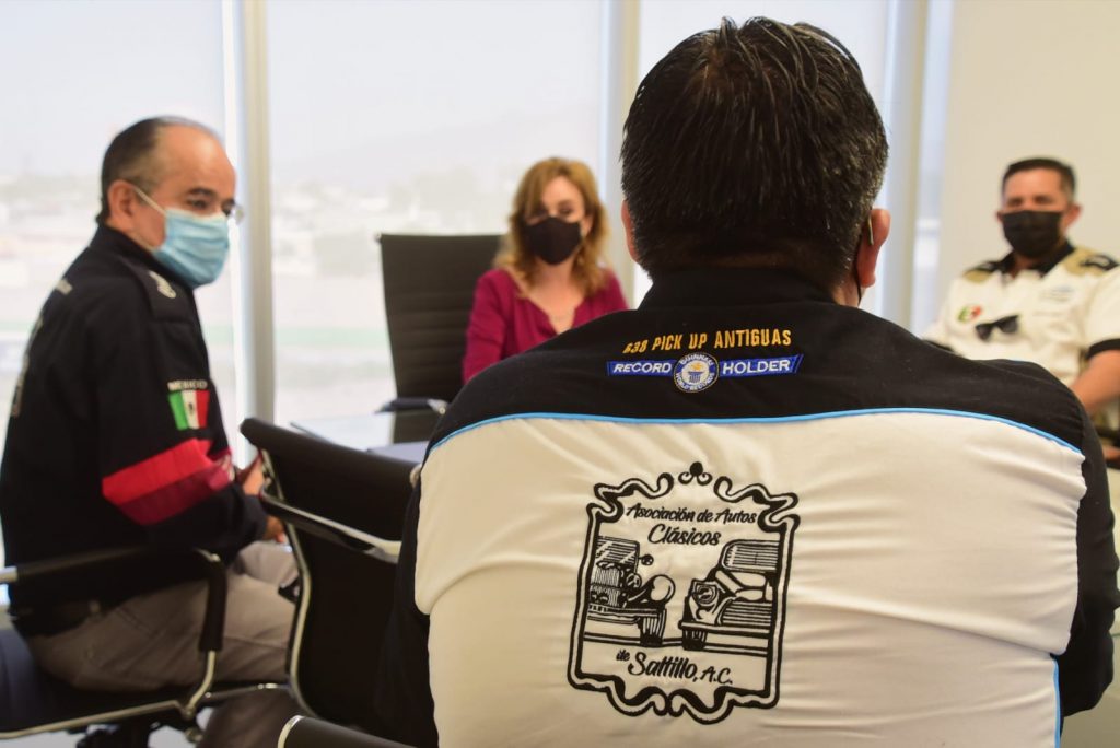 La Secretaria de Turismo y Desarrollo de Pueblos Mágicos del Estado, Azucena Ramos Ramos, se reunió por separado con los organizadores de los eventos, Fernando Montano, del Moto Club Raptors; Bernardo Quintanilla, hijo de don Pedro Quintanilla, quien promueve el Tour de la Elegancia; Luis Felipe Hernández Gutiérrez, presidente de la Asociación de Autos Clásicos de Saltillo, AC, y Víctor Gómez, de Caballeros con Causa.