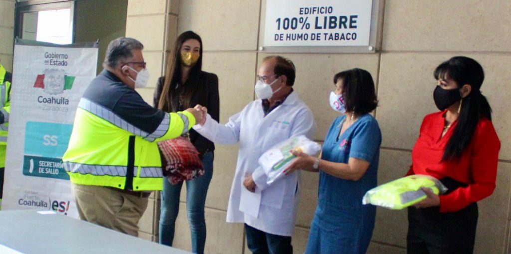 Así, el Voluntariado de Salud de Coahuila, DIF Municipal de Saltillo, el Club Rotario Saltillo Empresarial y la Fundación Ágata, entregaron equipo y kits de limpieza personal a paramédicos y brigadistas de SAMU Estatal.