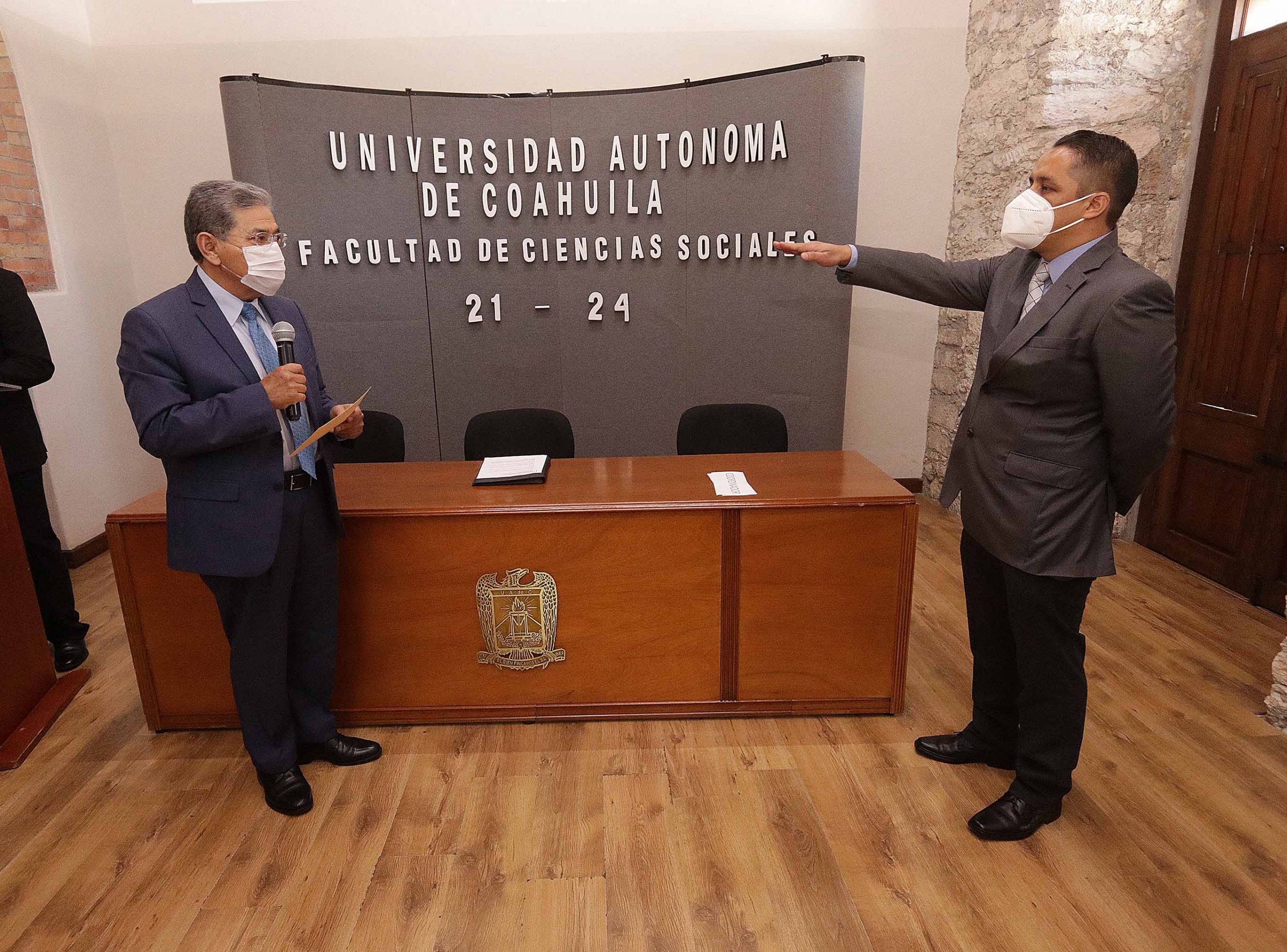 El Rector convocó al nuevo director a sumar esfuerzos para hacer frente a los retos del mundo actual, a la defensa de la autonomía universitaria, así como la incorporación de las nuevas prácticas, esquemas y metodologías didácticas e innovadoras que señala la propuesta de Reforma del Nuevo Modelo Educativo de la UAdeC.