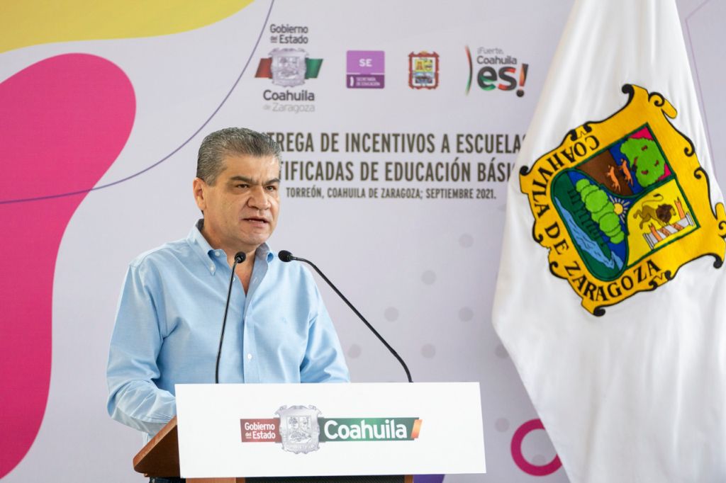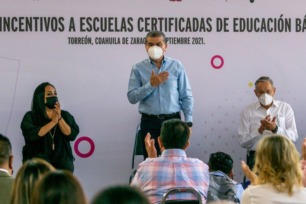 Leva gobernador Miguel Riquelme los recursos a planteles Certificados en la Región Laguna