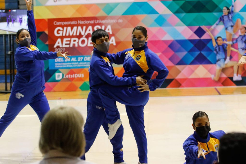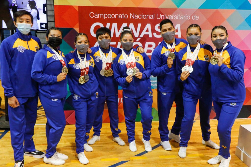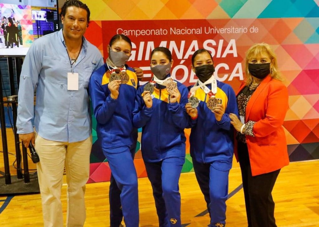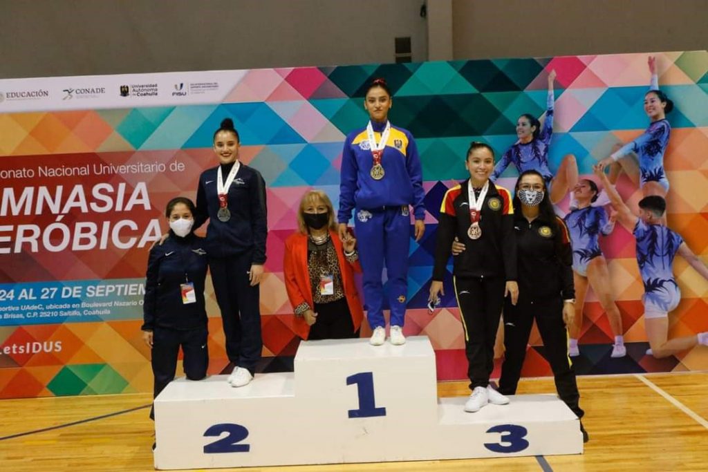 La delegación de estudiantes que representó a la Universidad Autónoma de Coahuila en el Campeonato Nacional Universitario de Gimnasia Aeróbica 2021, que se desarrolló del 24 al 27 de septiembre en la Unidad Deportiva de la UA de C, obtuvieron tres medallas de oro, dos de plata y una de bronce durante la competencia.