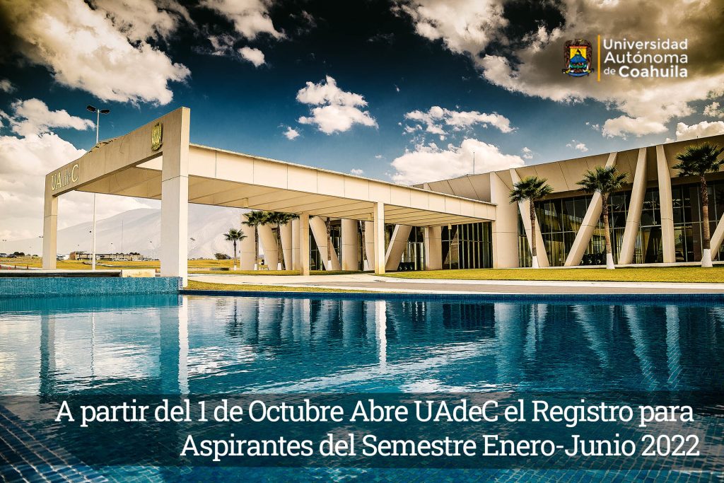 La Universidad Autónoma de Coahuila abrirá este viernes 1 y hasta el 27 de octubre el registro para aspirantes a ingresar a bachillerato, licenciatura y posgrado al semestre enero-junio 2022, a través de la página www.admisiones.uadec.mx.