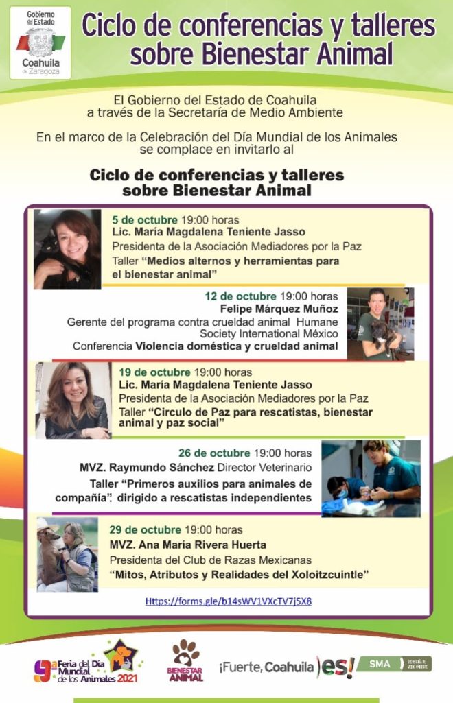Con el fin de Celebrar el Día Mundial de los Animales, que se conmemora el 4 de octubre, y para hacer conciencia sobre el cuidado, el respeto y la protección de los animales, se preparó una serie de conferencias virtuales que se impartirán de forma gratuita a todos los interesados.