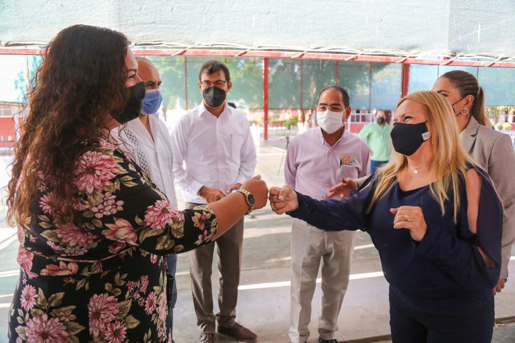 Marcela Gorgón indicó que, a través de los Comités de Participación Social, en coordinación con las autoridades educativas y los ayuntamientos, se preparan paquetes alimentarios que son entregados a los padres de familia para que en casa puedan prepararles diversos alimentos a sus hijos.