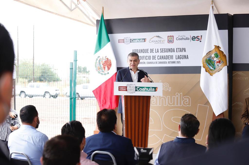 Gobernador Miguel Riquelme arranca segunda etapa del Edificio de CANADEVI Laguna