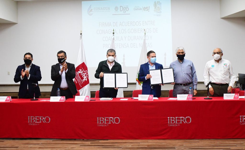 En la firma de este convenio estuvieron presentes, además, Eduardo Fuentes Silva, Director General del Organismo de Cuencas Centrales del Norte de la Comisión Nacional del Agua (Conagua); así como funcionarios estatales tanto de Coahuila como de Durango y representantes la Universidad Iberoamericana y organismos de la sociedad civil. (EL HERALDO)