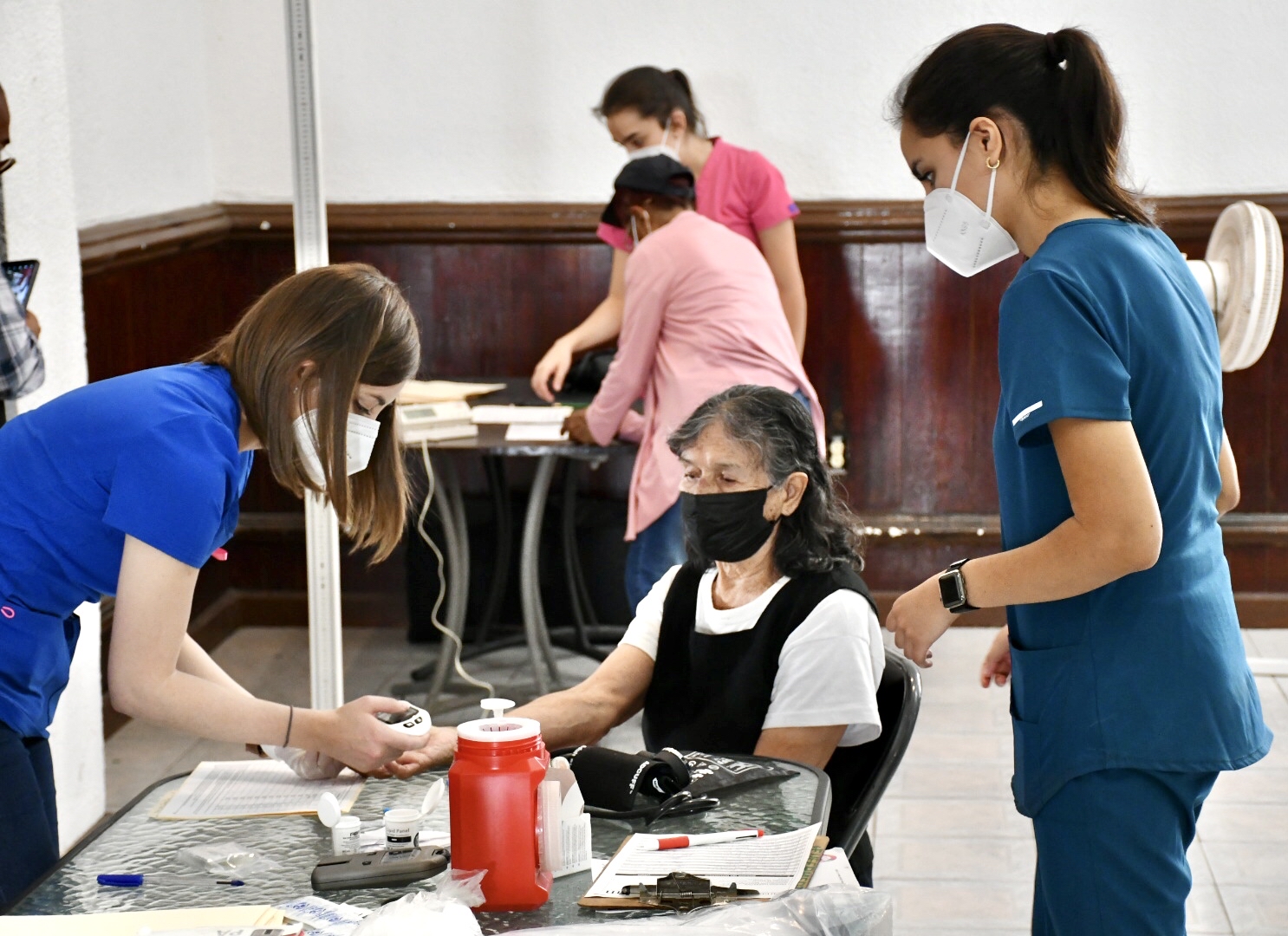 “Estas jornadas de detección, siendo la séptima, se realizan gracias a un trabajo coordinado entre el Estado y el municipio, gracias al apoyo de las y los enfermeros de la Secretaría de Salud podemos detectar, atender y darle seguimiento a enfermedades cardiovasculares que aquejan a nuestros adultos mayores que son empacadores voluntarios” declaró el director. (EDUARDO SERNA)