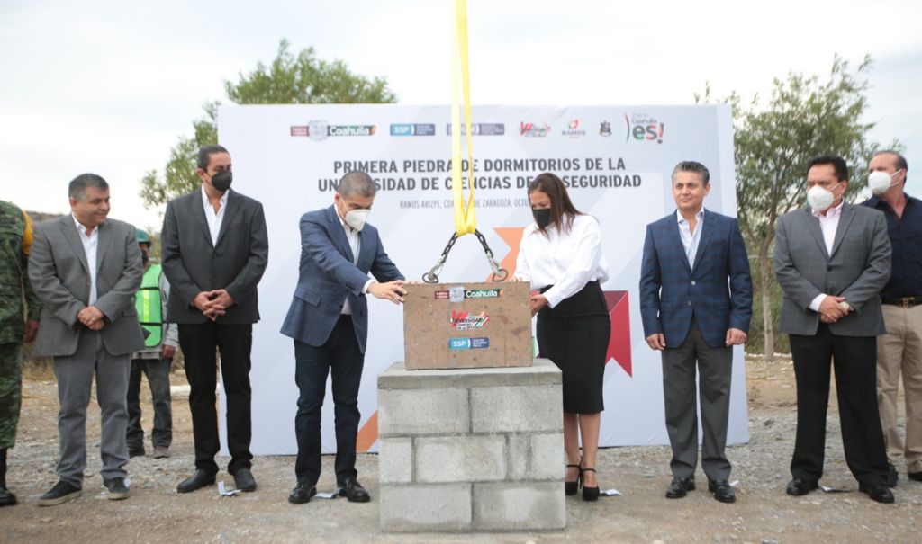 Previo a esta ceremonia de graduación se colocó la primera piedra de lo que será el nuevo edificio de dormitorios de la Universidad de Ciencias de la Seguridad, en el que se invertirán 15 millones de pesos.