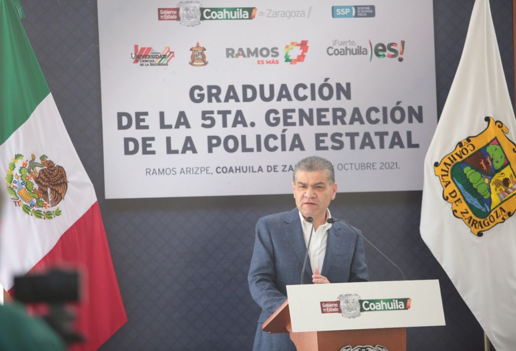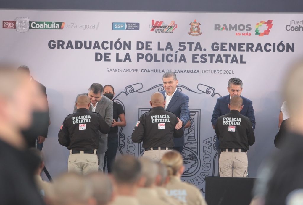 Miguel Riquelme aseguró que la de Coahuila es una las mejores corporaciones policiales del País, en la que se reciben los mejores salarios, y que espera al término de su Administración sean los más altos de México.