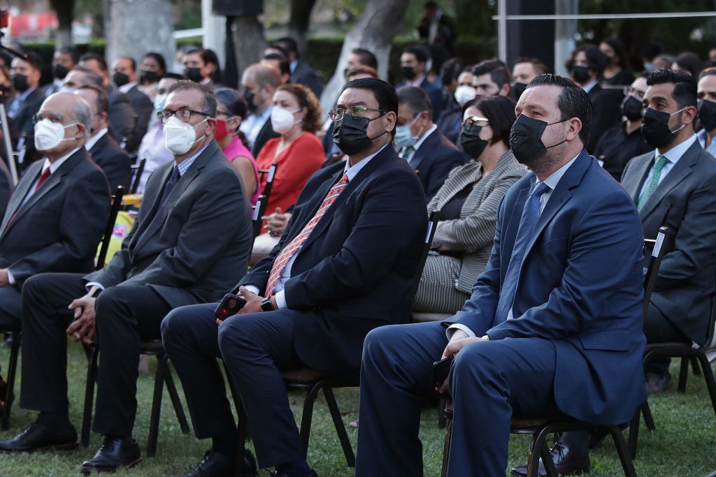 El evento se llevó a cabo en la explanada del plantel, donde asistieron en representación del gobernador del estado, Miguel Ángel Riquelme Solís, el consejero jurídico del Ejecutivo, Carlos Alberto Estrada Flores, el rector de la máxima casa de estudios, Salvador Hernández Vélez, el coordinador de la Unidad Saltillo, Julio Saucedo Zul y la secretaria ex oficio del Consejo Directivo de la Facultad de Jurisprudencia, Ana Marcela Lombellde Valle, los miembros del Consejo Directivo, docentes, estudiantes e invitados especiales.