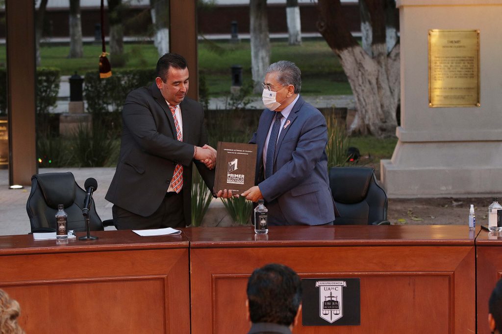 Yáñez Arreola, resaltó que, gracias a un trabajo responsable y compromiso de docentes y estudiantes, se recibió la acreditación al programa educativo de Licenciatura en Derecho por los Comités Interinstitucionales para la Evaluación de la Educación Superior A.C. (CIEES) y las y los egresados de la Facultad obtuvieron el Primer lugar en la Evaluación del Programa de Humanidades y Ciencias Sociales EGEL CENEVAL en la Universidad y el Primer lugar general de la Unidad Saltillo.