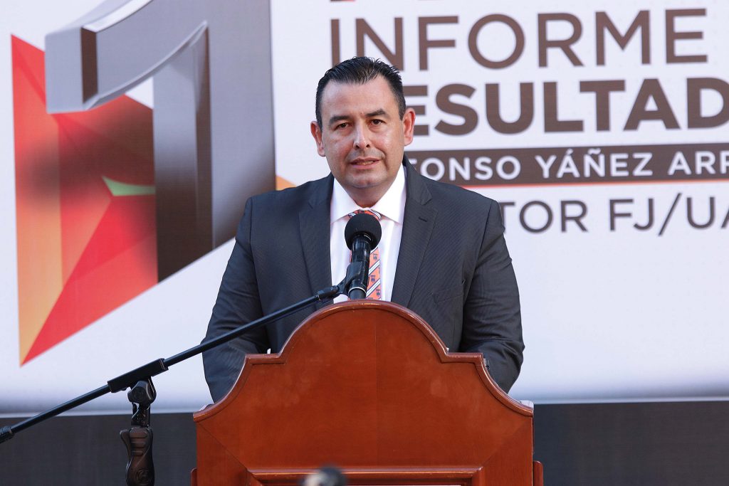 En su mensaje, el Rector, reconoció el trabajo realizado durante el primer año de administración del director Alfonso Yáñez, a quien dijo cuenta con un liderazgo incluyente, efectivo y sensible, ha sabido aglutinar el talento de toda su comunidad en función de objetivos y metas concretas, destacando los vínculos de colaboración con instancias del sector público, social y de procuración de justicia, que han dado como resultado programas de beneficio para docentes y estudiantes.