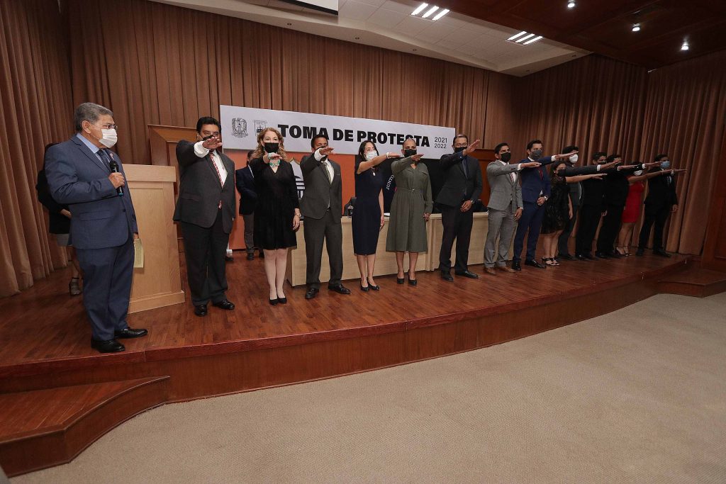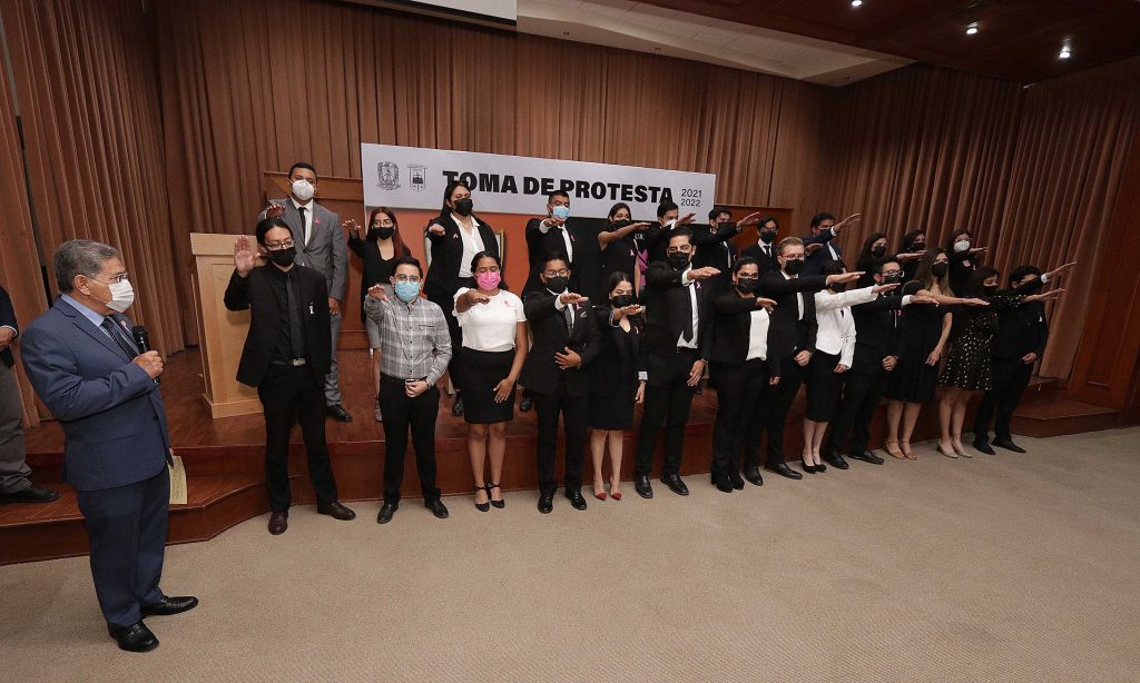 Por otro lado, en atención a lo dispuesto en el Estatuto Universitario, en el que se señala la libre asociación de estudiantes, el rector, Salvador Hernández Vélez, tomó protesta a la nueva Sociedad de Alumnos “Antonio Caso” de la Facultad de Jurisprudencia y así mismo a los miembros del Consejo Directivo, que es el órgano de autoridad al interior de las escuelas y facultades, garantizando la participación de estudiantes y docentes en decisiones claves.