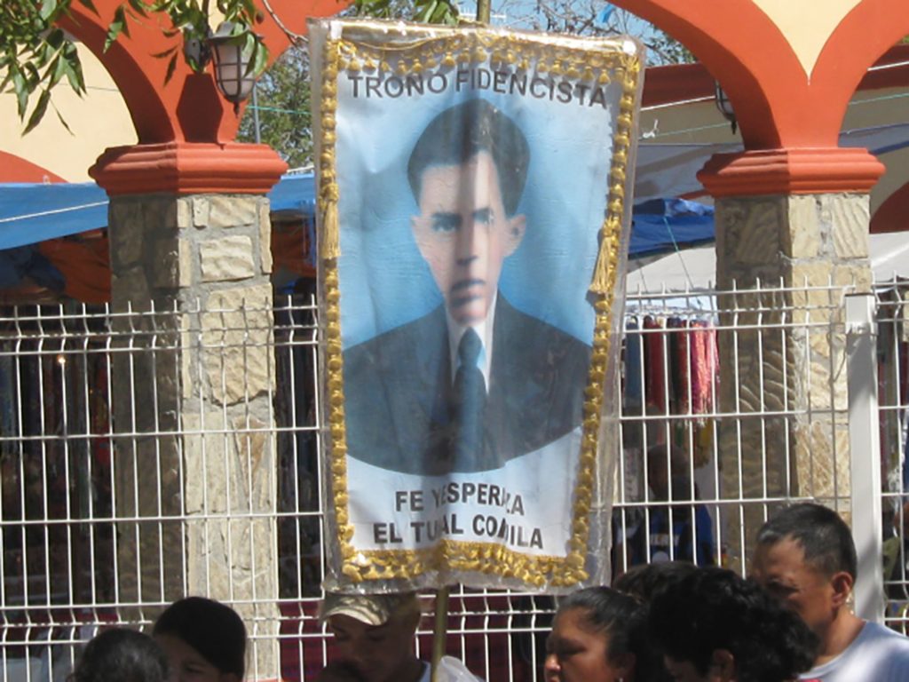 José de Jesús Fidencio Constantino Síntora fue un curandero originario de Guanajuato quien, durante los primeros años del siglo XX, en Espinazo, pueblo rural que se encuentra en la línea de división entre el estado de Nuevo León y el de Coahuila, se hizo muy famoso por su capacidad de sanar a multitudes de enfermos, tanto que llegó a ser considerado santo. Después de la muerte de Fidencio, se difundió la creencia de que su espíritu se seguía encarnando en algunos devotos (llamados “materias” o “cajitas”) para seguir con su labor de curandero.