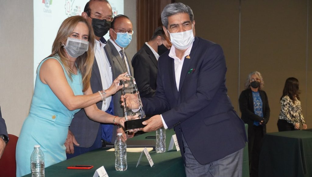 El reconocimiento lo recibió el rector Raúl Martínez Hernández, y fue entregado por el secretario de Economía de Coahuila, Jaime Guerra Pérez; por Teresa Guajardo Berlanga, secretaria de Fiscalización y Rendición de Cuentas de Coahuila; así como por Francisco Manuel Osorio Morales, subsecretario de Educación Media y Superior, en representación del secretario de Educación de Coahuila, Higinio González Calderón.