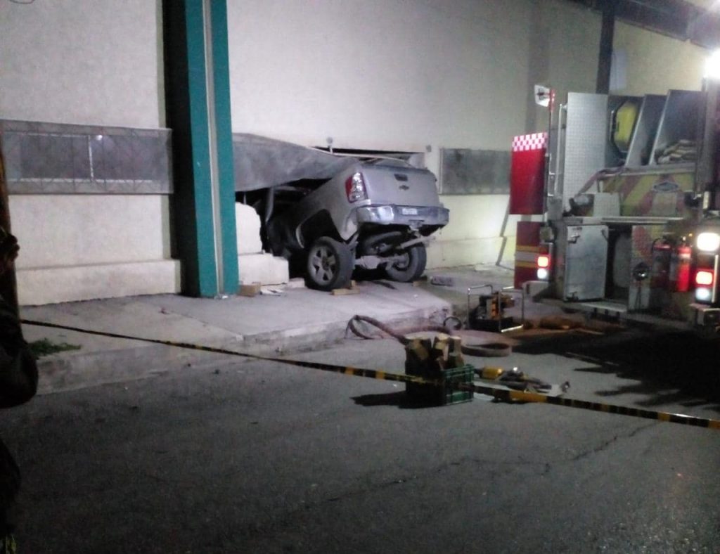 Elementos de Tránsito Municipal acudieron a tomar conocimiento y al ver prensado al conductor entre el volante, tablero y la caja de la camioneta, solicitaron una ambulancia en el lugar.