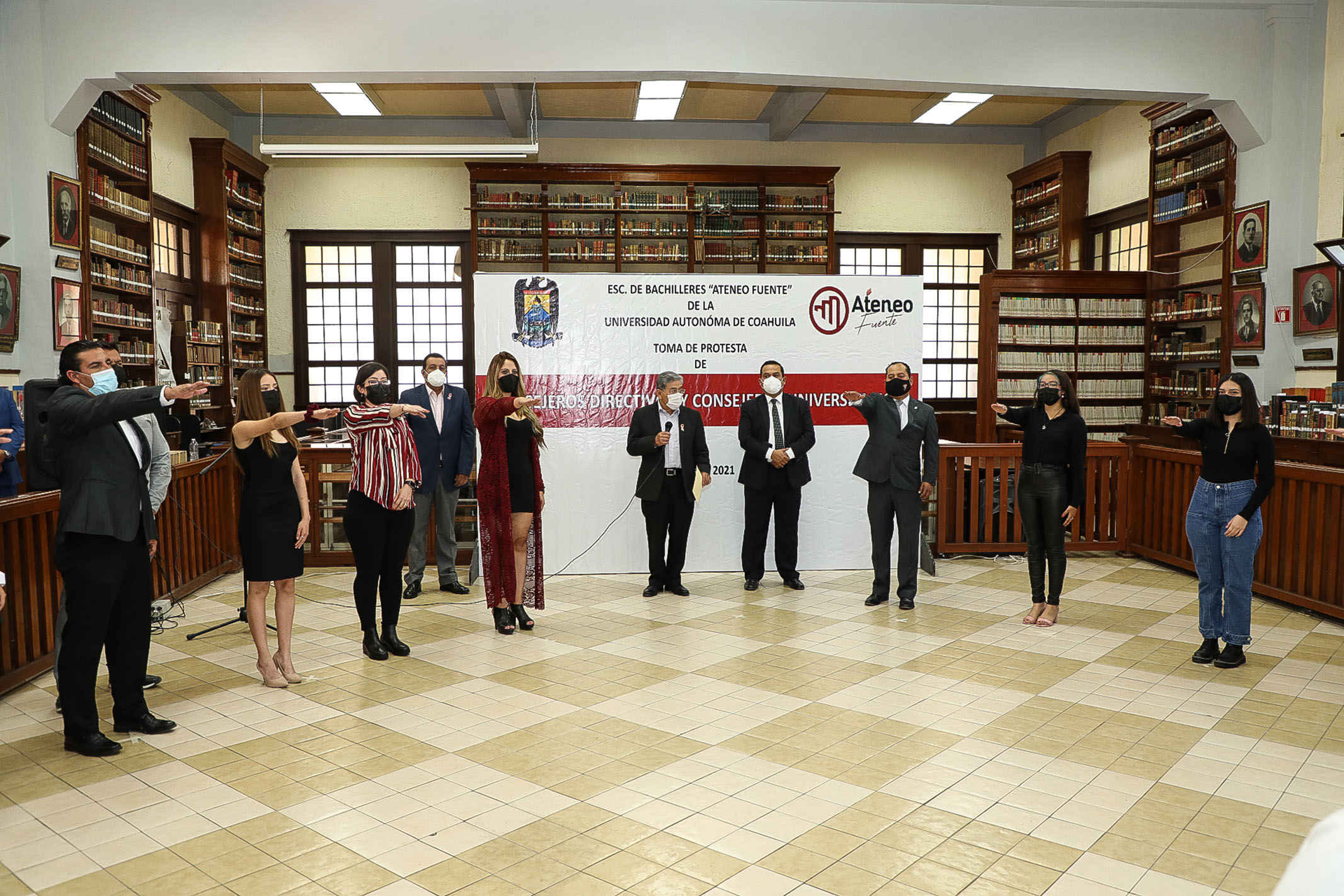La ceremonia se realizó en las instalaciones de la biblioteca del plantel “Don José García Rodríguez”, donde se contó con la presencia del rector de la máxima casa de estudios, Salvador Hernández Vélez, el secretario general de la UAdeC, Miguel Ángel Rodríguez Calderón, el director de la Escuela de Bachilleres Ateneo Fuente, Marco Antonio Contreras Becerra, el secretario administrativo del plantel, Manuel Pérez Terrazas y los miembros de ambos consejos.
