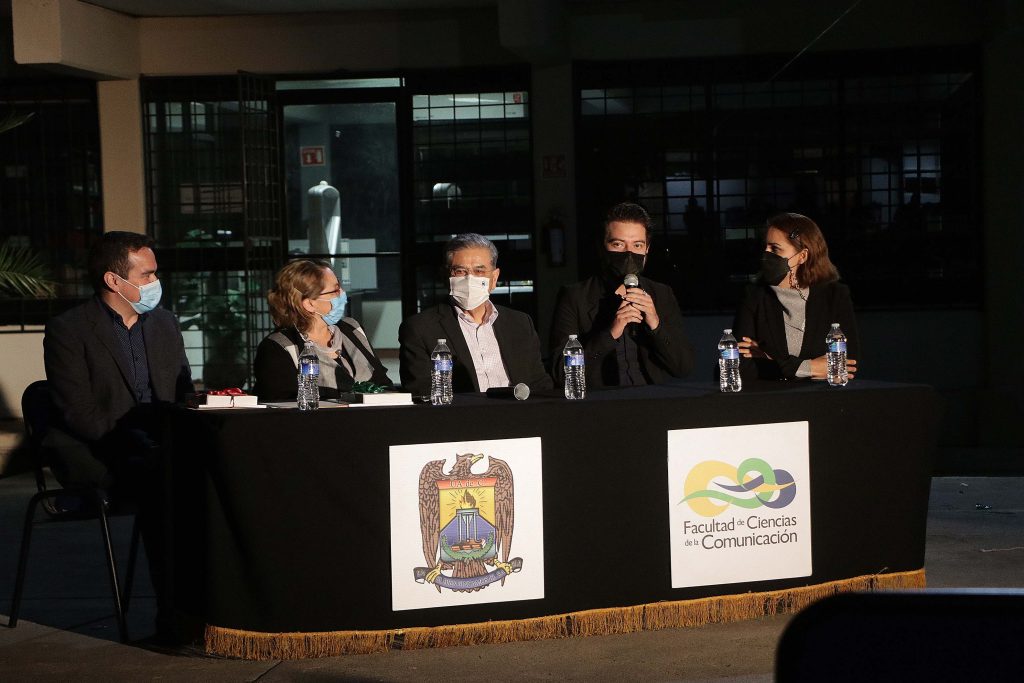 En la presentación, se contó con los comentarios del rector de la máxima casa de estudios, Salvador Hernández Vélez, la directora de la Facultad, Gabriela de la Peña Astorga, el líder del Cuerpo Académico Comunicación para el Desarrollo Social, Miguel Sánchez Maldonado y la profesora investigadora, Brenda Azucena Muñoz Yáñez.