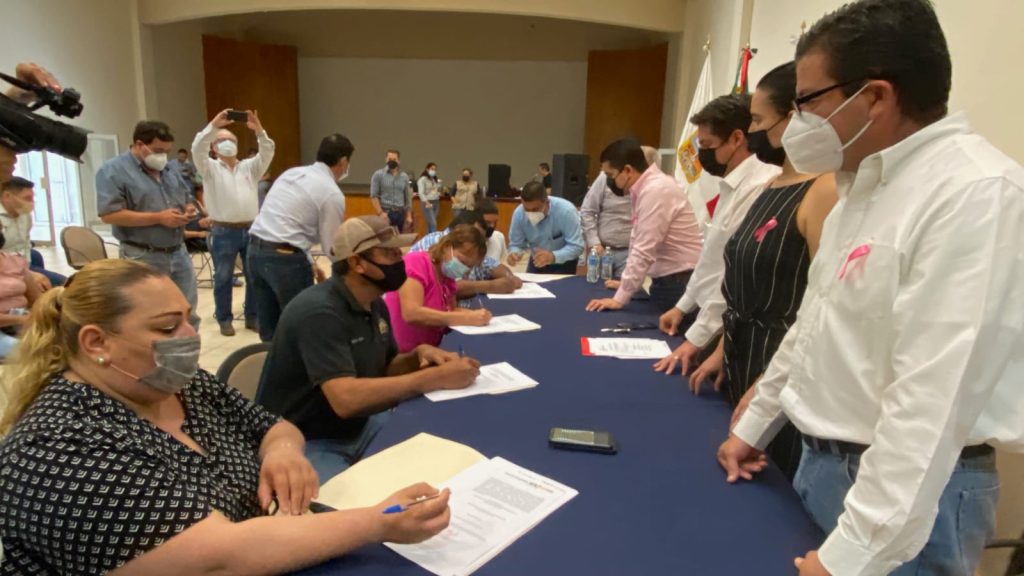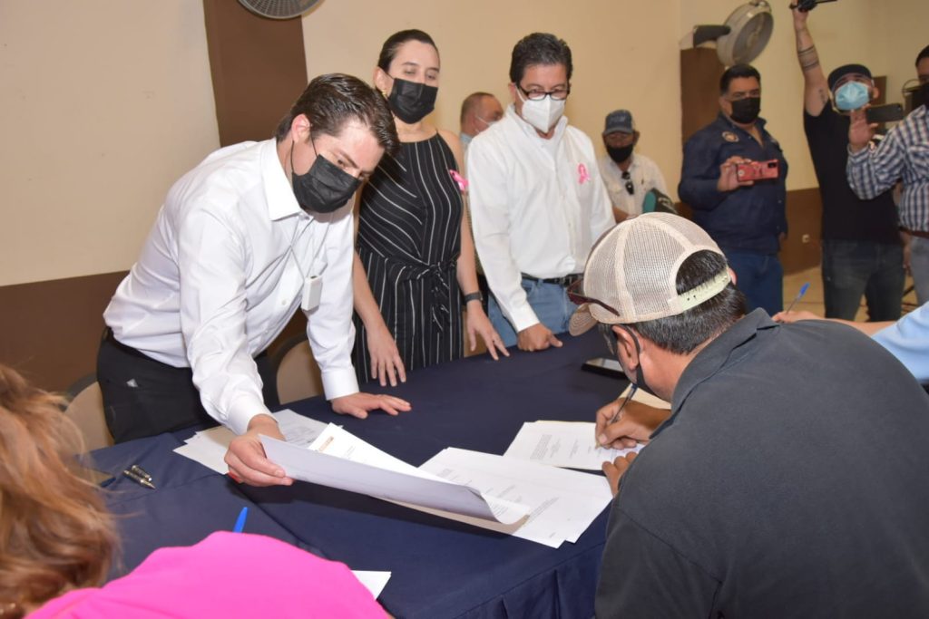 El convenio de regulación firmado por el secretario de Vivienda y Ordenamiento Territorial del Estado, Enrique Martínez y Morales, y Amaranta Guerrero Corrales, subdirectora Jurídica del Grupo México, representa la certeza jurídica para más de 400 familias de la Región Carbonífera.