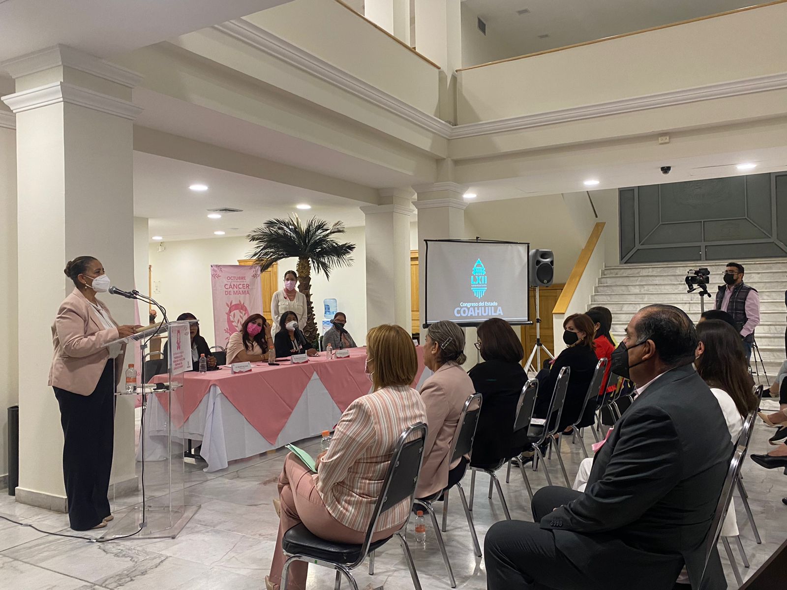 La conferencia tuvo lugar en el Recinto Legislativo “ Miguel Ramos Arizpe” del Congreso del Estado, en la que además participaron Liliana Elizondo Figueroa y Guadalupe Hernández Gaitán, Presidenta y Directora del “Grupo Reto A.C”, quienes hablaron de los servicios que ofrece esta asociación civil, de ayuda a mujeres diagnosticadas de cáncer a lograr su recuperación física y emocional.