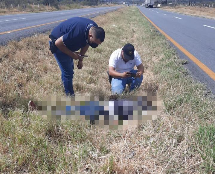 Elementos de la Agencia de Investigación Criminal (AIC) atendieron el reporte que informaba sobre el hallazgo de un muerto a la altura del kilómetro 15 de la vía federal.