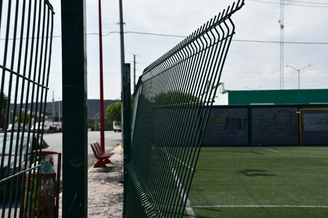 Vecinos de la colonia Parajes Del Valle en Ramos Arizpe solicitan la intervención de las autoridades municipales para atender las condiciones en las que se encuentra la cancha deportiva ubicada en la calle Blanca Gutiérrez Flores en su cruce con el bulevar Valle Oriente.
