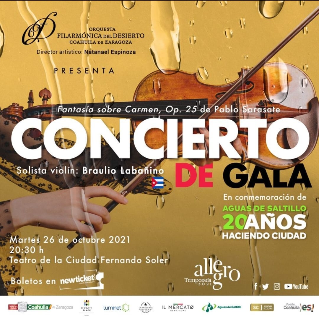 Este próximo martes a las 8:30 de la noche en el Teatro de la Ciudad Fernando Soler de Saltillo, la Orquesta Filarmónica del Desierto de Coahuila (OFDC) ofrecerá un concierto de gala para celebrar el 20 aniversario de Aguas de Saltillo (AGSAL) en la capital coahuilense.