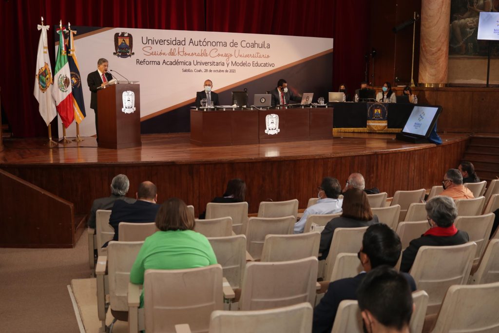 El Consejo Universitario de la Universidad Autónoma de Coahuila, en sesión extraordinaria, aprobó por mayoría la Reforma Académica Universitaria y Modelo Educativo, con lo que la institución responde a las exigencias del entorno, así como a las necesidades y la realidad institucional.