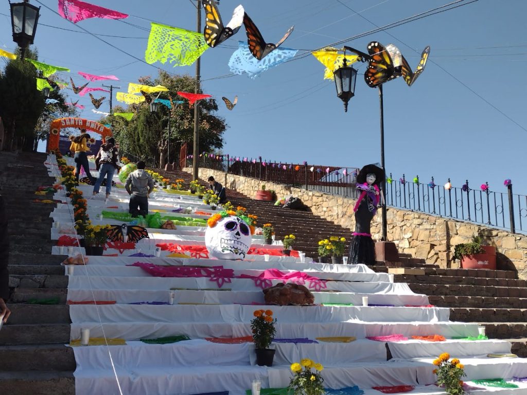 Realizado en coordinación entre personal del Instituto Municipal de Cultura de Saltillo (IMCS), alumnos de la Universidad Carolina y ciudadanía en general, este viernes a las 8:00 de la noche se inaugurará oficialmente el Altar de Muertos Monumental instalado en las escalinatas del Barrio Santa Anita de la Zona Centro de Saltillo.