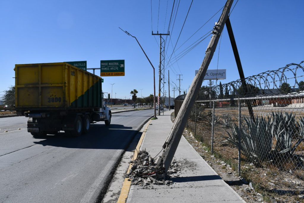 El lugar del incidente está ubicado en la lateral de la carretera Monterrey-Saltillo justo en la desviación hacia el parque industrial PIDECO, a la altura de la empresa UPL OpenAg, con dirección de norte a sur. Dicha empresa ha colocado una viga de acero debido a que el poste se encuentra cada vez más cerca de colapsar y dañar la malla ciclónica.