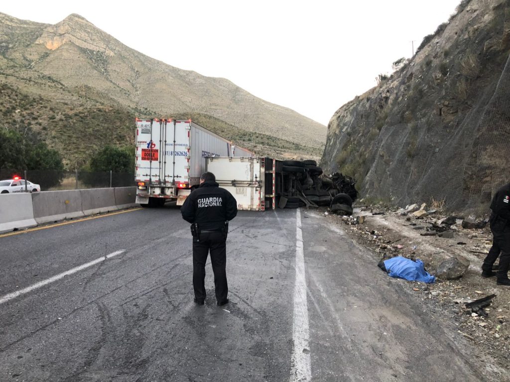 Arteaga.- Dos hombres perdieron la vida en una volcadura ocurrida sobre la carretera 57, a la altura del tramo conocido como «Los Chorros».