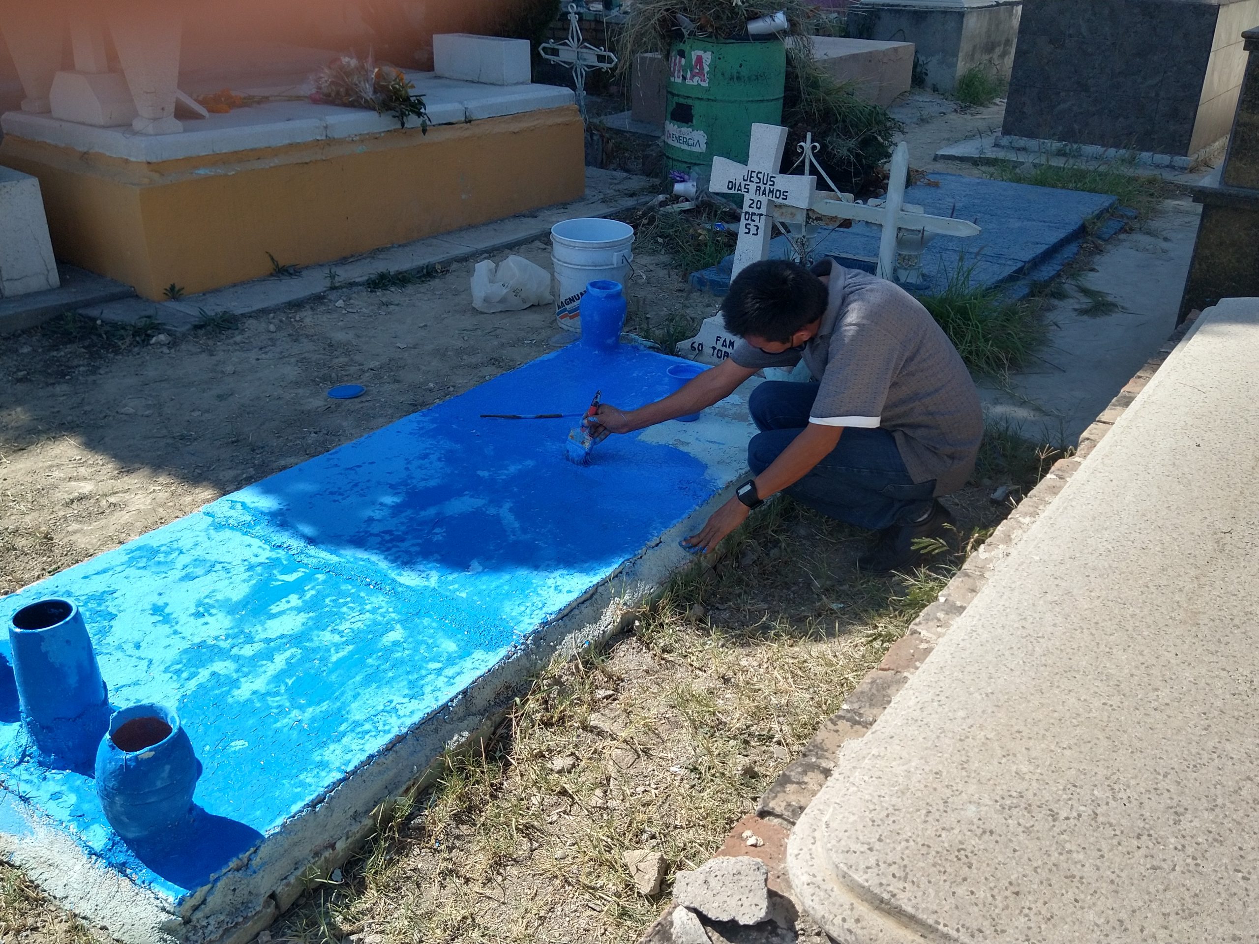 Provistos de cubetas, material de limpieza, pintura y otros implementos para dar una “manita de gato” a las tumbas de sus difuntos, algunos de los asistentes se dieron a la tarea de hermosear o reparar los sepulcros para darles un mejor aspecto, en tanto que otros más permanecían en silencio recordando, rezando o derramando algunas lágrimas por la ausencia de sus seres queridos.