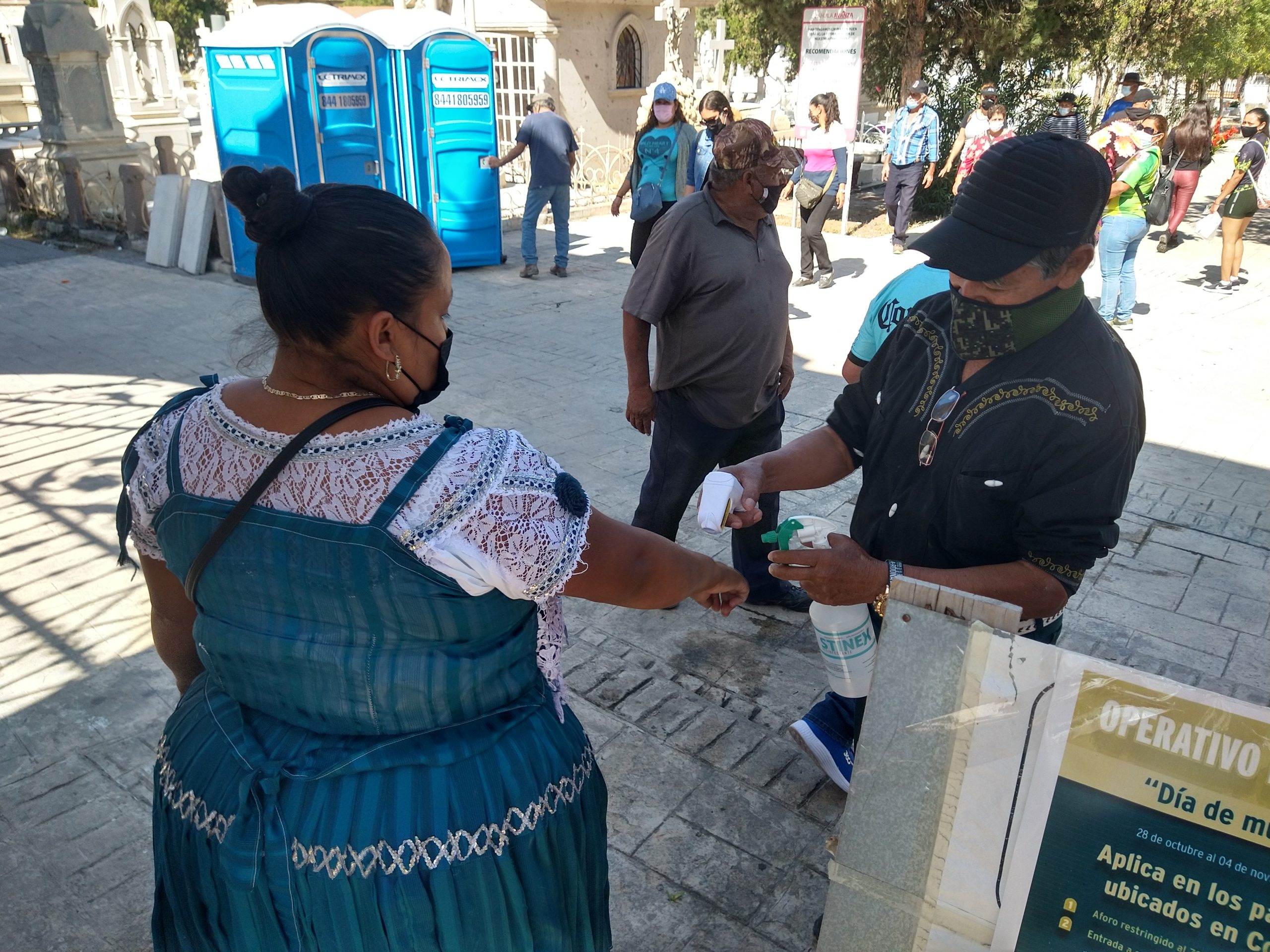 A la entrada del panteón destacó la presencia de empleados de ese emblemático espacio, quienes llevaban a cabo la aplicación de gel y la toma de la temperatura a los visitantes, además que recordaron a los visitantes que no está permitida la entrada a menores de edad y embarazadas sin su esquema de vacunación antiCovid completo.