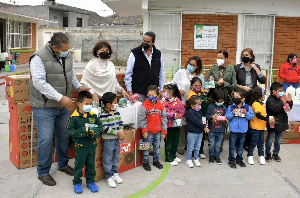 El ayuntamiento de Ramos Arizpe benefició con el programa ‘Escuelas al 50’ al jardín de niños Bertha Carvajal Rodríguez, plantel ubicado en la Colonia Manantiales del Valle, en el que en el alcalde Chema Morales Padilla otorgó 100 mil pesos en total para los dos turnos, lo anterior, en diverso equipo el cual constó de seis minisplits, material didáctico y productos para sanitizar.