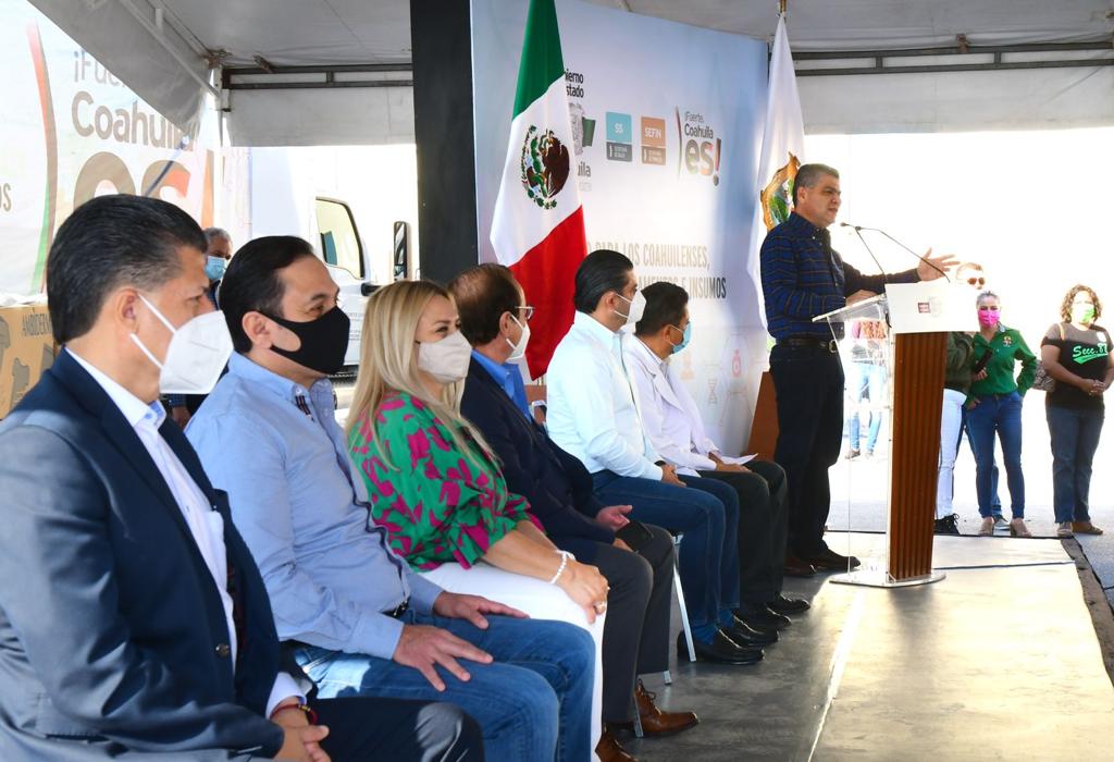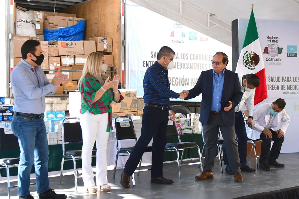 En la ceremonia que el Mandatario estatal encabezó este miércoles, tan sólo para los municipios de Matamoros, San Pedro, Francisco I. Madero y Torreón entregó medicamentos e insumos por 7.8 millones de pesos.