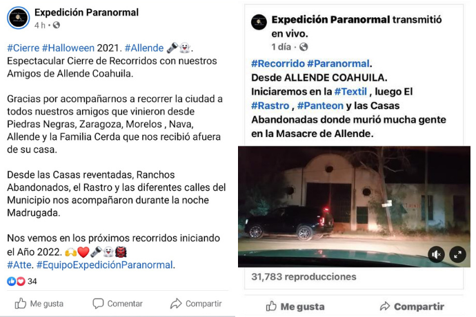 “Nos vemos en los próximos recorridos iniciando el año 2022”, agrega el denominado “EquipoExpediciónParanormal”, que aseguró haber informado a los elementos de la Secretaría de Seguridad de Coahuila, a los efectivos de la Marina-Armada de México y a las autoridades locales.
