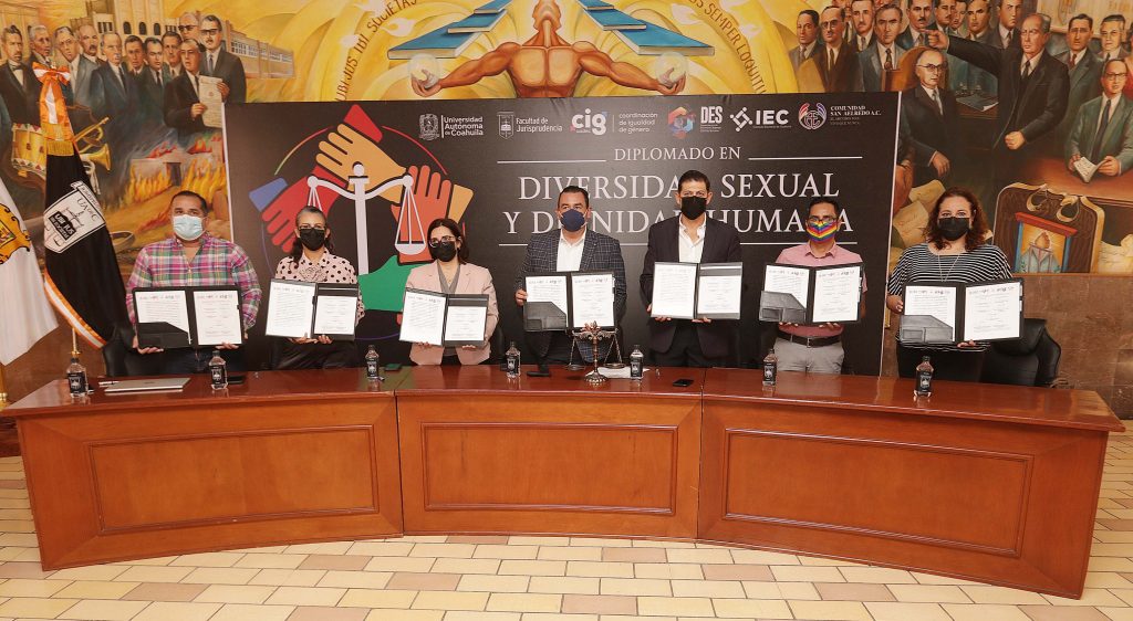 La Facultad de Jurisprudencia de la Universidad Autónoma de Coahuila, firmó este viernes, el convenio de colaboración con el Instituto Electoral de Coahuila (IEC) y la Asociación Civil San Aelredo de Coahuila, para impartir el Diplomado de Diversidad Sexual y Dignidad Humana, que se ofertará de manera virtual a partir del 24 de enero de 2022.