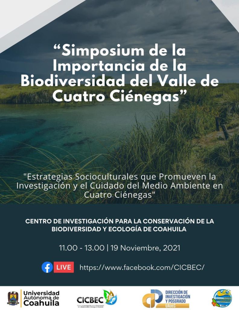 Cuatro Ciénegas, Coahuila.- El Centro de Investigación y Conservación de la Biodiversidad y Ecología de Coahuila (CICBEC), la Dirección de Investigación y Posgrado y la Agenda Ambiental Universitaria de la Universidad Autónoma de Coahuila, invitan al Simposio sobre la Importancia del Valle de Cuatro Ciénegas, el cual se llevará a cabo de manera virtual el viernes 19 de noviembre de 2021 de 11:00 a 13:00 horas.