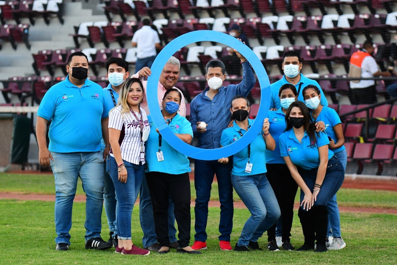 Pero también personal de esta dependencia realizó un círculo azul al centro del diamante del Rey de los Deportes, para dejar claro el mensaje de unidad de la comunidad internacional en torno a esta enfermedad, comentó Juan Pérez Ortega, Jefe de la Jurisdicción Sanitaria VI.