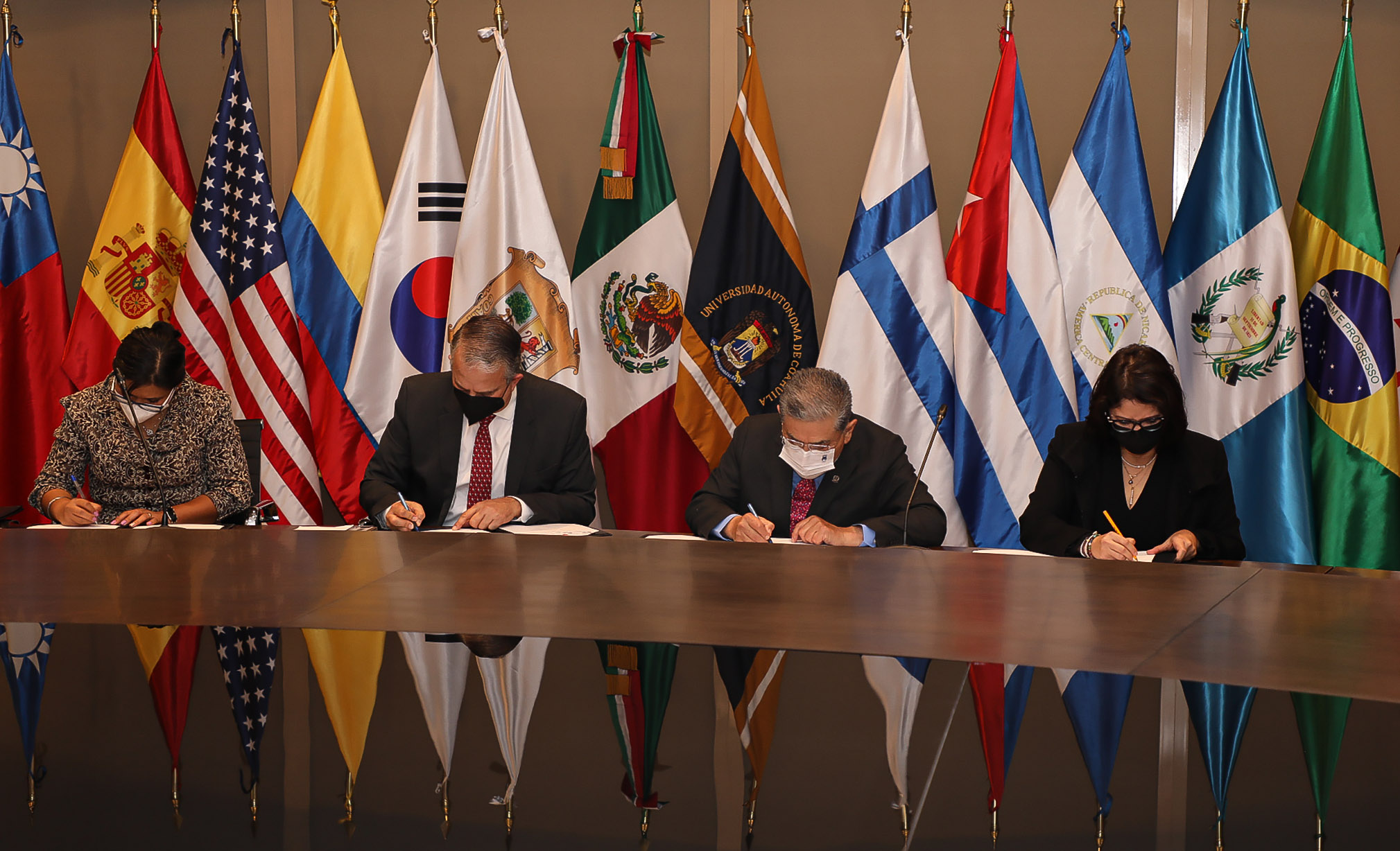 Así mismo, estuvieron presentes rectores y representantes de las 11 universidades participantes, el rector de la Universidad Carolina, Emanuel Garza Fishburn, el rector del Tecnológico Superior de Monclova, Raúl Farías Martínez, el rector de la Universidad Autónoma del Noreste, Jorge Eduardo Verástegui, el director general del Instituto Tecnológico Superior de Ciudad Acuña, Saúl Contreras, en representación del rector de la Universidad Autónoma de Piedras Negras, Xavier Martínez Aguirre, asistió Rafael Enrique Martínez y de la Universidad Valle de Santiago de Saltillo la vicerrectora, María del Carmen Del Valle.