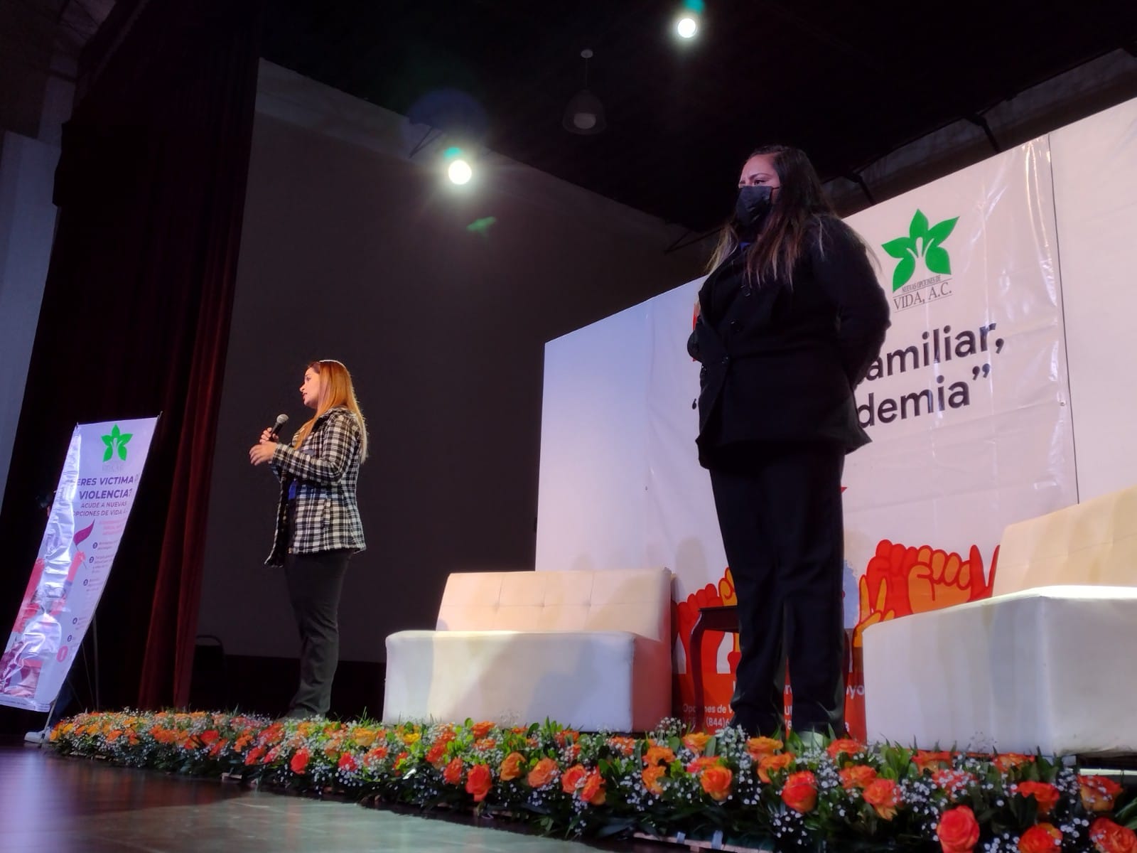 Este viernes en el Teatro de la Ciudad «General Eulalio Gutiérrez Ortiz», en Ramos Arizpe, las psicólogas Angelica García de Santiago y Alejandra Sánchez Valdés, integrantes de la Asociación Civil «Nuevas Opciones de Vida», ofrecieron la conferencia «Violencia Familiar, la Otra Pandemia», a fin de exhortar a las decenas de mujeres asistentes a no normalizar y denunciar ante autoridades cualquier acto de agresión física, verbal o psicológica.