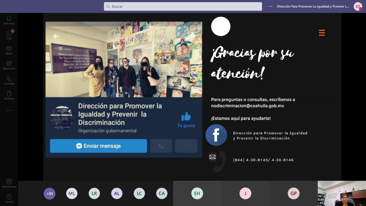 Torreón. – Con el objetivo de proporcionar herramientas que permitan un cambio cultural basado en igualdad, inclusión y no discriminación, la Secretaría de inclusión y Desarrollo Social del Estado (SIDS), a través de la Dirección para Promover la Igualdad y Prevenir la Discriminación (DPIPD), llevó a cabo la capacitación “Igualdad, Discriminación: Fundamentos Básicos”.