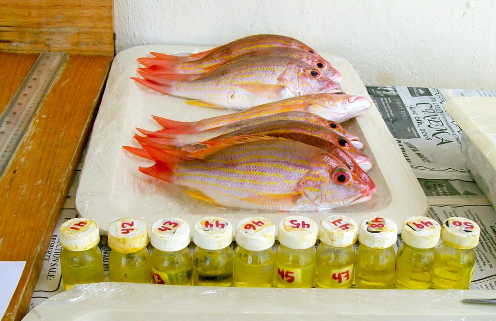 El estudio consistió en capturar individuos de L. synagris, una vez al mes durante un año, en tres zonas de pesca a lo largo de la costa norte de la península de Yucatán: Celestún, Dzilam de Bravo y Río Lagartos.