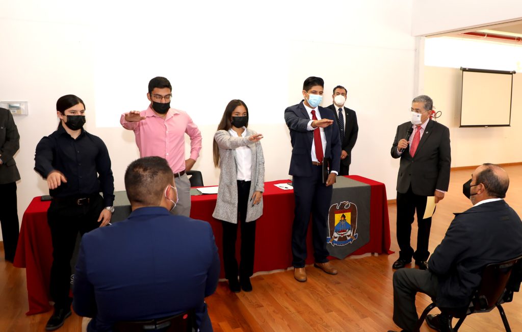 El Rector acompañado del director de Asuntos Académicos, Daniel Garza Treviño y del director del plantel, Jesús Rabindranath Galván, tomó protesta a los integrantes del Consejo Directivo y Sociedad de Alumnos “Innovación Puma”, quienes se comprometieron a trabajar a beneficio de la comunidad universitaria.